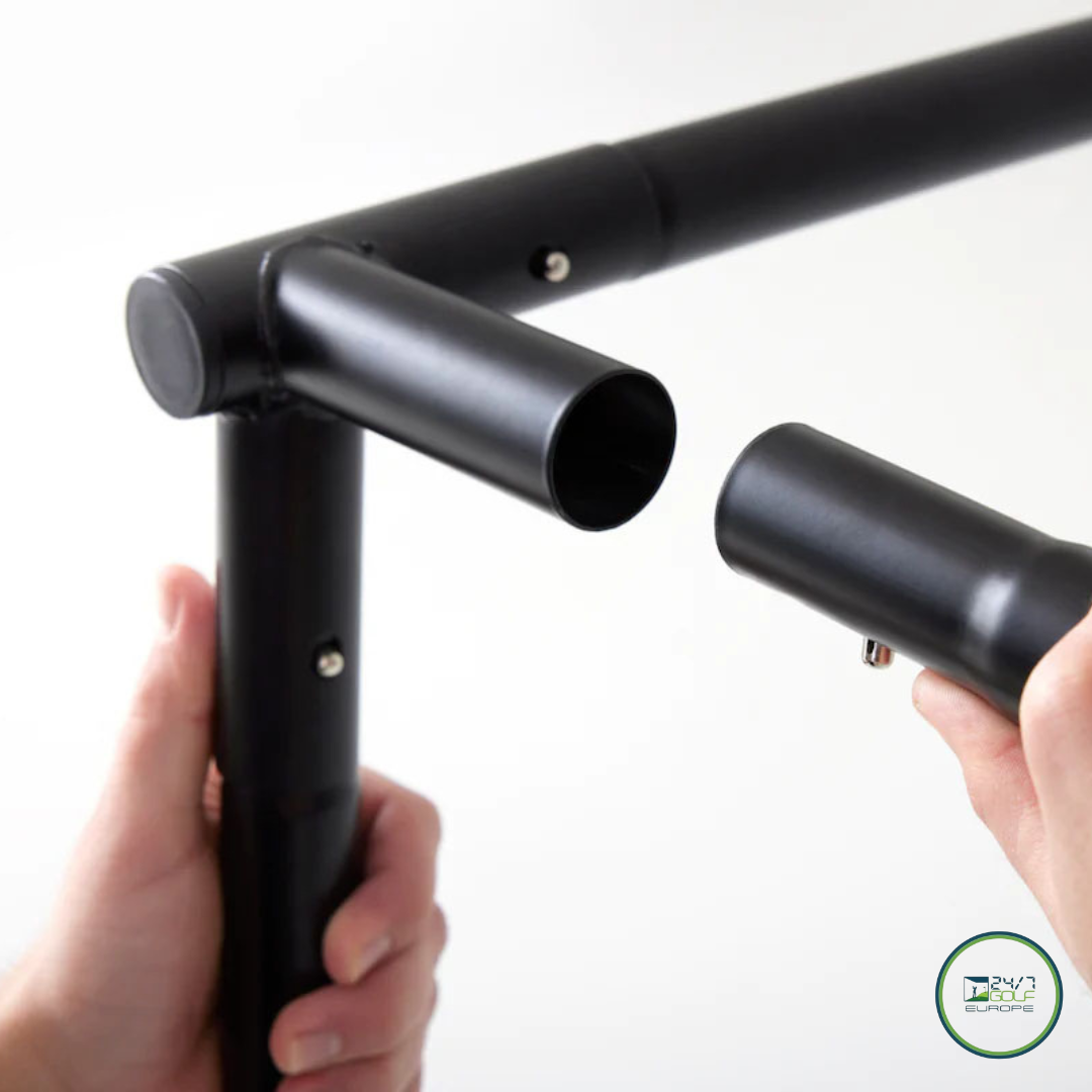 24/7 Golf Simulator Bay Enclosures incorporates an offset screen design, whereby the projector screen is positioned approximately 30cm forward of the rear frame border, reducing 99% of the metal frame that surrounds a majority of other brand portable simulator enclosures, all but eliminating the chance of golf ball ricochet. The offset design also creates a built in rear buffer zone, leaving space for the screen to expand upon golf ball impact within the enclosure frame border.