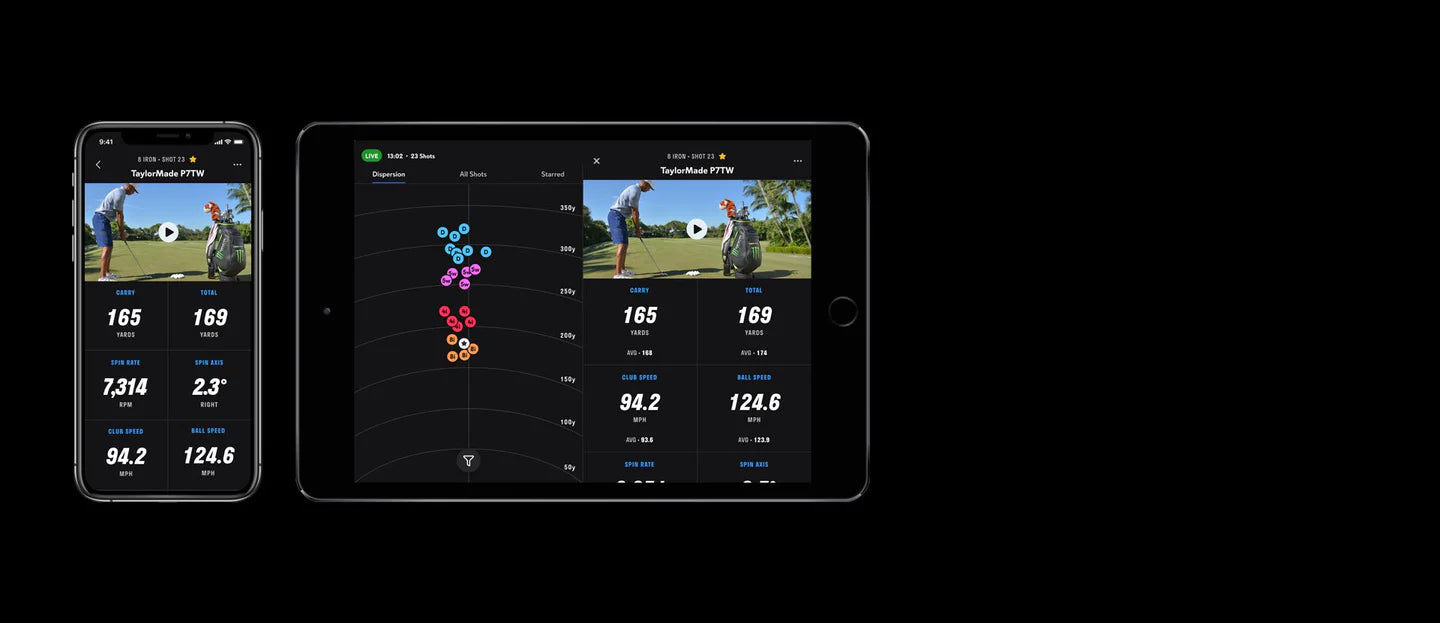 A customizable heads-up OLED display engineered to show you exactly what you want to see what happens every swing or use the free included app to see your data & video across your iPhone, iPad, Apple Watch and even hear your selected data through your bluetooth headphones.